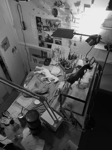 Peek into my world! Shots capturing what my work looks like - the various work spaces, different sessions and the procedures I follow when creating an artist made model horse.