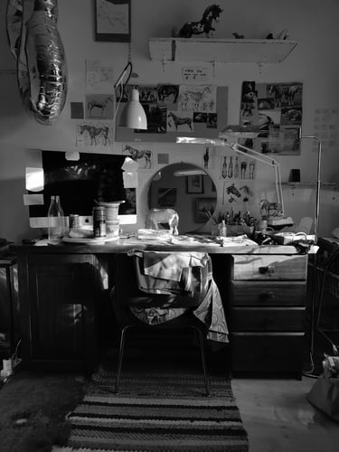 In 2026 I'm diving deeper in miniature model sculpting and dedicating ever more time to horses. I intent to grow as a sculptor and go beyond my comfort zone. I work as a professional fine artist as my main occupation so life is ever changing and sometimes uncertain, but you can't beat it. Recently my main goal has been to find more eco friendly solutions to create art; producing less waste, using materials consciously and working with intention and nature in mind.